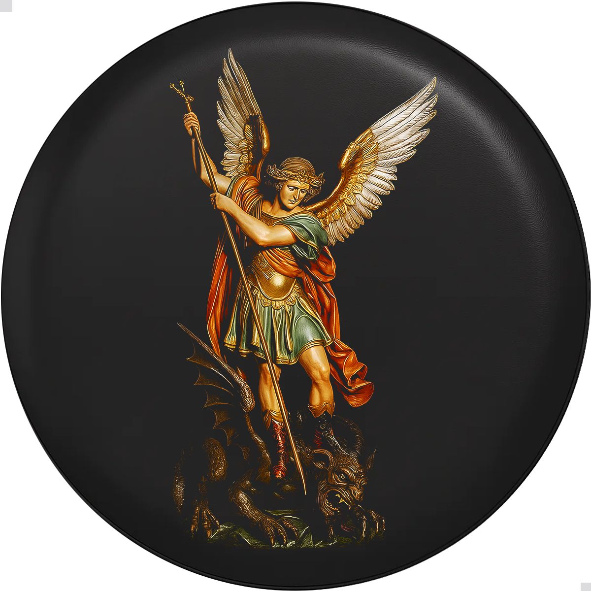 Nossas Capas para estepe são fabricadas com dois materiais de primeira qualidade, ambos de características anti mofo e impermeável, muito resistentes à intempérie: Vinil 440g com proteção UV na parte central, que além da durabilidade, apresenta alta qualidade na impressão das estampas e nylon 600 na faixa da banda de rodagem do pneu estepe.