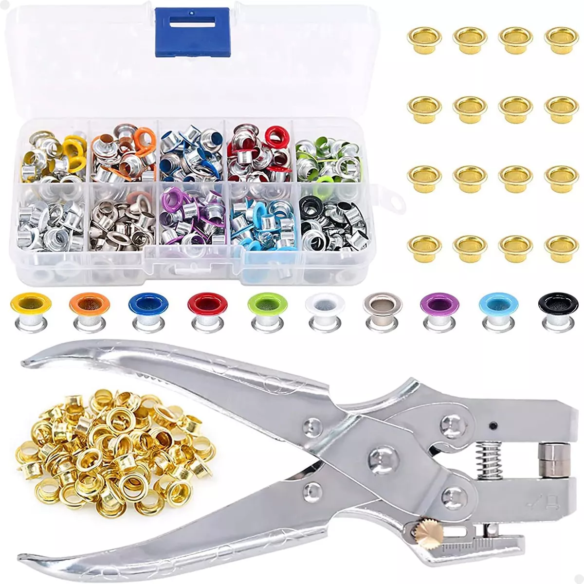 Alicate Ilhós Manual com 400 Ilhós Metálicos coloridos para Fixação