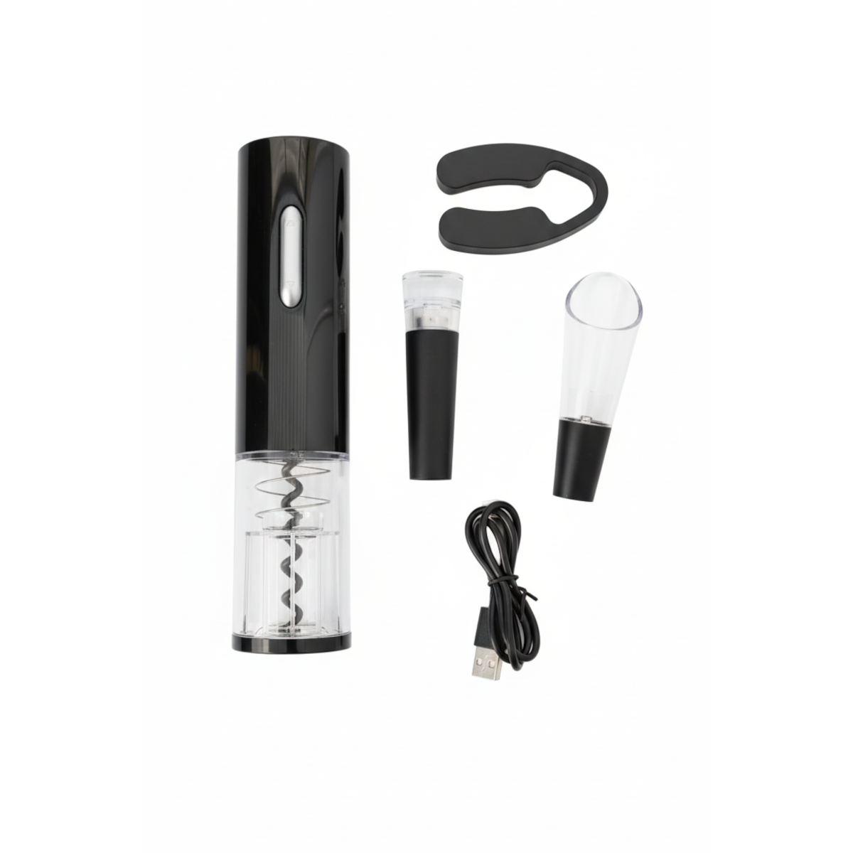 Kit Abridor de Vinho Saca Rolha Elétrico Automático sem Fio movido à pilha com 3 Acessórios