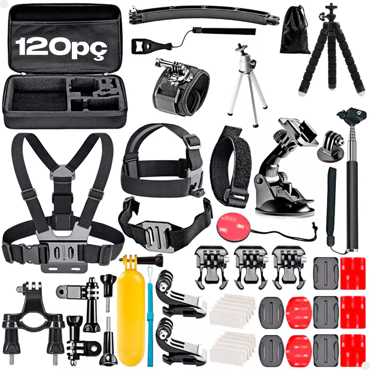 Este kit de 120 peças de acessórios para câmeras de ação é a solução definitiva para maximizar o potencial de suas filmagens e fotografias em qualquer situação.