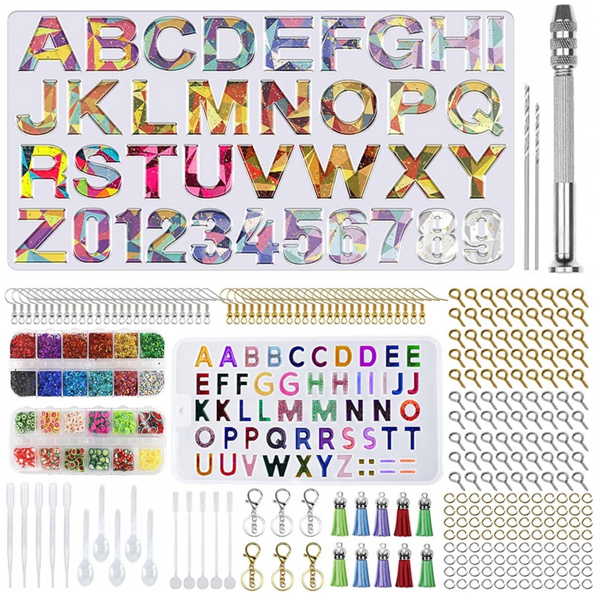 Com o kit de letras de resina Lorben, você terá tudo o que precisa para começar a criar chaveiros incríveis. Além da forma de silicone durável e de alta qualidade, o kit inclui conta-gotas para medir a resina e o endurecedor com precisão, misturadores e colheres de plástico, potinhos de glitter e pastilhas de mosaico, pingentes de tassel para personalizar ainda mais suas criações, mini broca de mão com 2 bits e acessórios em metal para montagem de chaveiros. Com esse kit completo, você terá tudo o que precisa ao alcance das mãos!