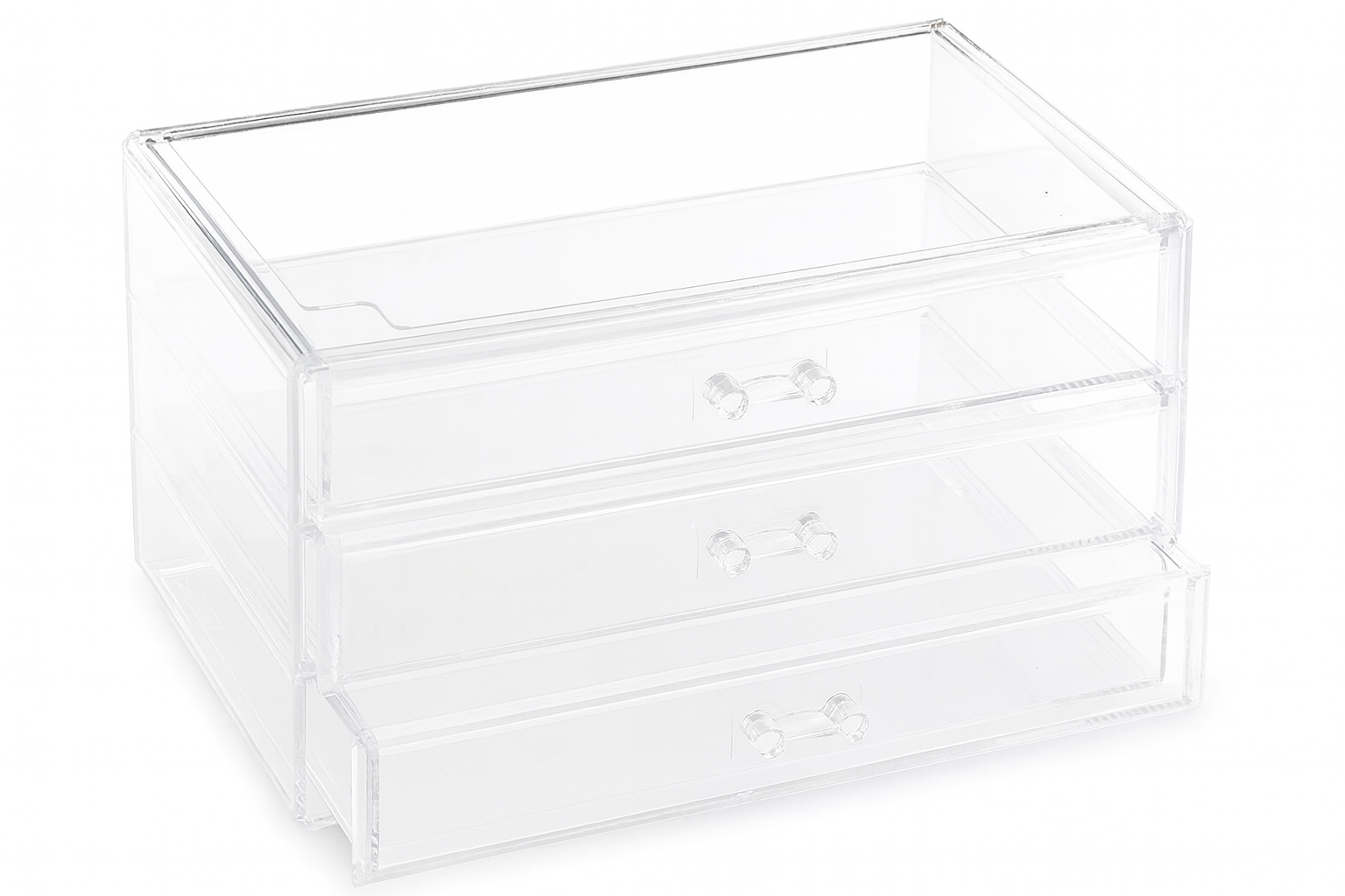 Organizador Porta Maquiagem e Cosméticos de design moderno, com 3 gavetas para acomodar cosméticos, maquiagens e também joias e bijuterias ou o que mais desejar.