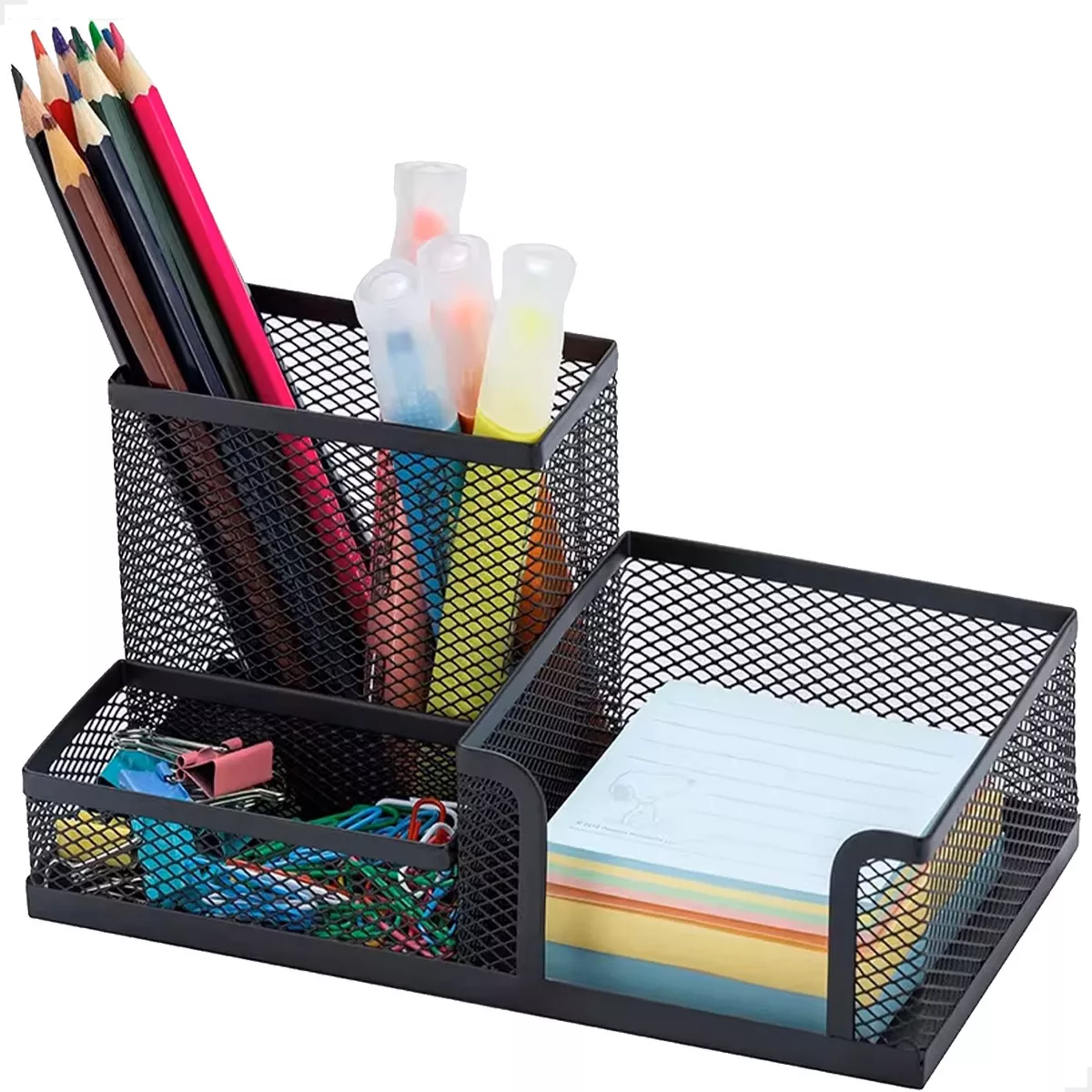 Mantenha sua mesa de trabalho organizada e elegante com este organizador de mesa em aço com design moderno. Ideal para escritórios, home office ou estudo, este organizador é a solução perfeita para manter seus materiais de escritório sempre à mão e de forma ordenada.