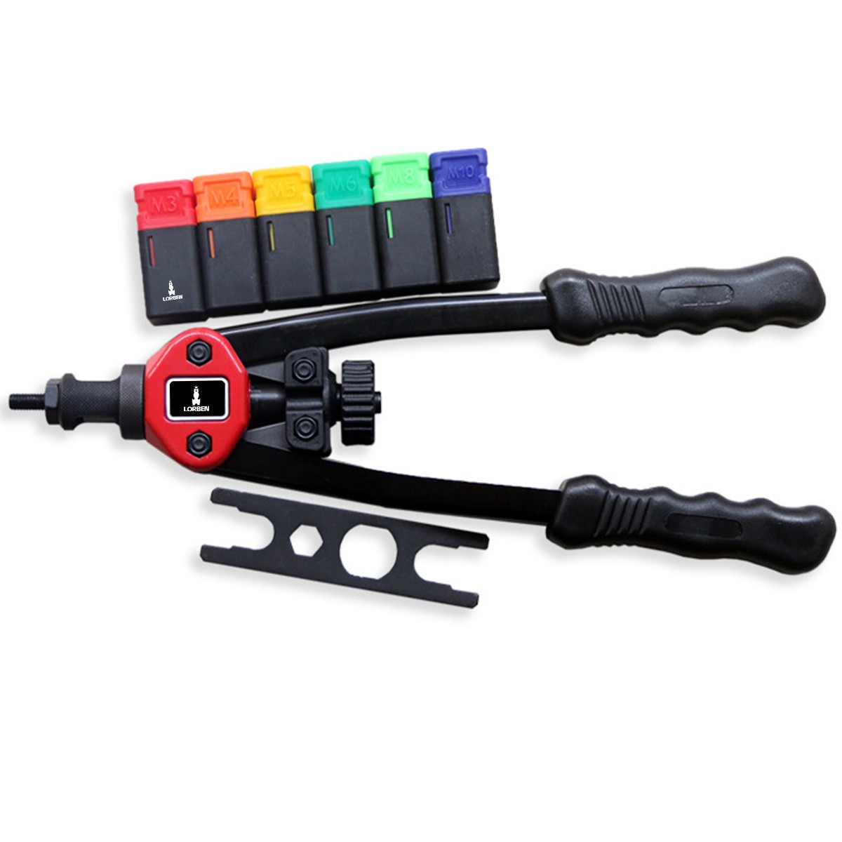 Indicado para uso industrial e automotivo, o Rebitador Manual Tipo Alavanca Lorben trabalha com rebites de rosca M3, M4, M5, M6, M8 e M10. É ideal para trabalhar em áreas de difícil acesso.